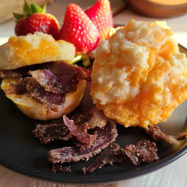 Experience comfort food with a kick. Our Cheese Scones with The Ember Cut biltong blend sharp cheddar and hand-cut artisanal beef for a warm, flaky, and unforgettable snack. Perfect for brunch boards, cozy mornings, or sharing with friends — these scones take Alberta’s local flavors to the next level.